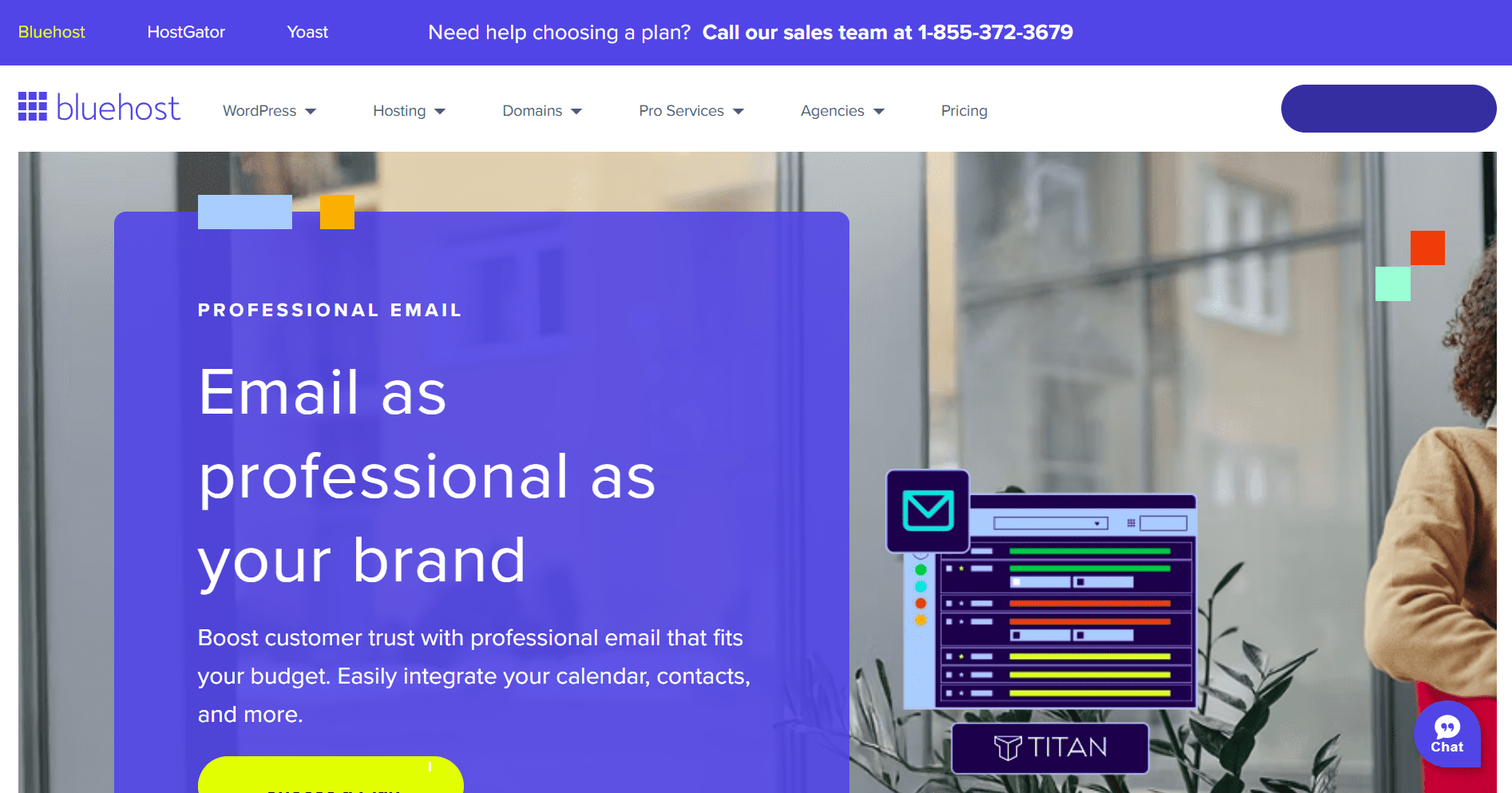 - 24/7 expert assistance: Whether you’re troubleshooting an issue or adjusting your email configuration, Bluehost’s support team is always available via chat or phone.