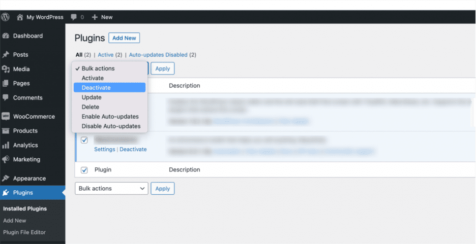 In WordPress, a broken or outdated plugin or theme can cause the server to return an invalid response. To check if that’s the cause: