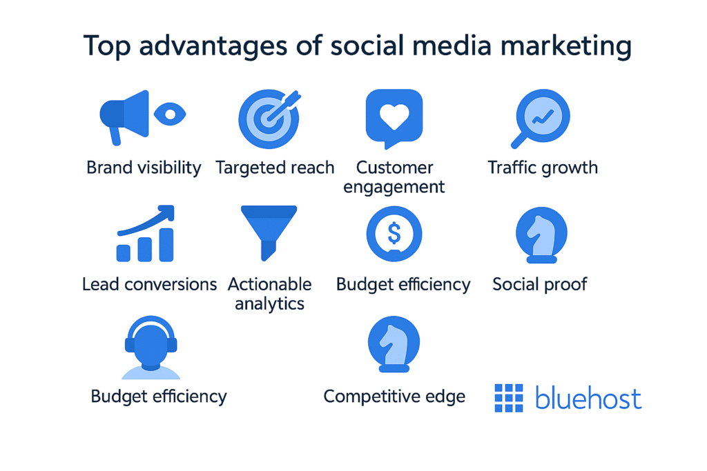 A strong website makes every click from social media more valuable. It turns casual social media users into real leads and customers. This is where the advantages of social media marketing and a solid hosting foundation work together. At Bluehost, we help you connect social media campaigns with a fast, secure and reliable site.