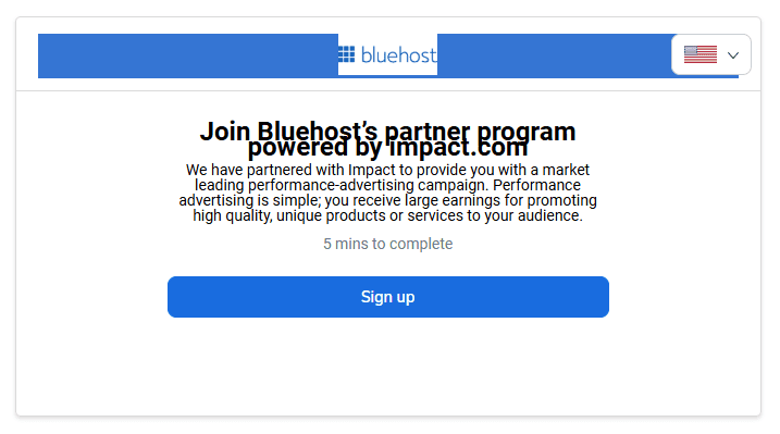 2. Once you have accessed the Bluehost Partner Program page, click the Sign up button.