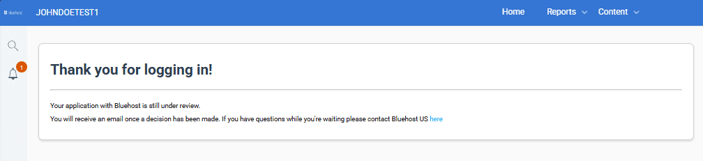 Note: Your application with Bluehost will be reviewed, and you’ll receive an email once a decision has been made.
