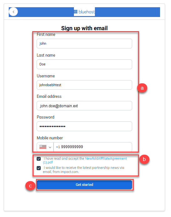 - Please tick the “I have read and accept the Newfold Affiliate Agreement (1).pdf” box to agree to the terms and conditions.