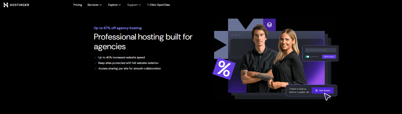 Hostinger provides specialized managed WordPress hosting for agencies and developers seeking a robust platform to support their expanding client portfolios. By utilizing high-speed NVMe storage, the infrastructure is engineered to maintain exceptional uptime and consistent performance for complex professional environments.