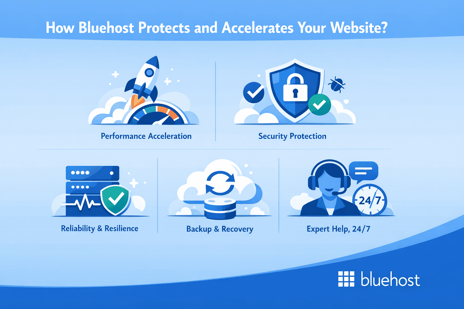 How Bluehost protects and accelerates your website?