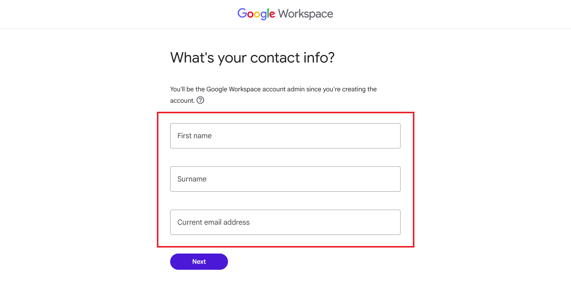 Once these details are in place, the setup process flows much more smoothly. From here, you can start creating your Google Workspace account and work through the signup steps without stopping to fill in gaps.