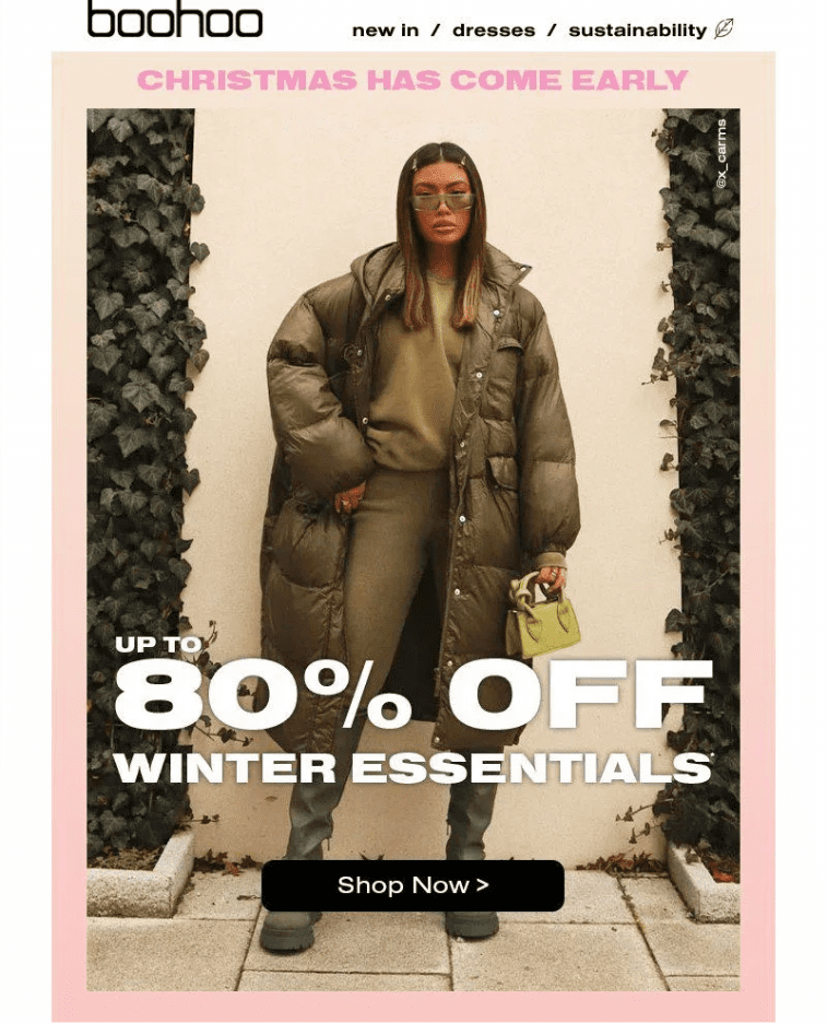 Boohoo’s “Early Bird” campaign encouraged early holiday shopping with special discounts, helping to spread out holiday sales and reduce last-minute shopping pressure.