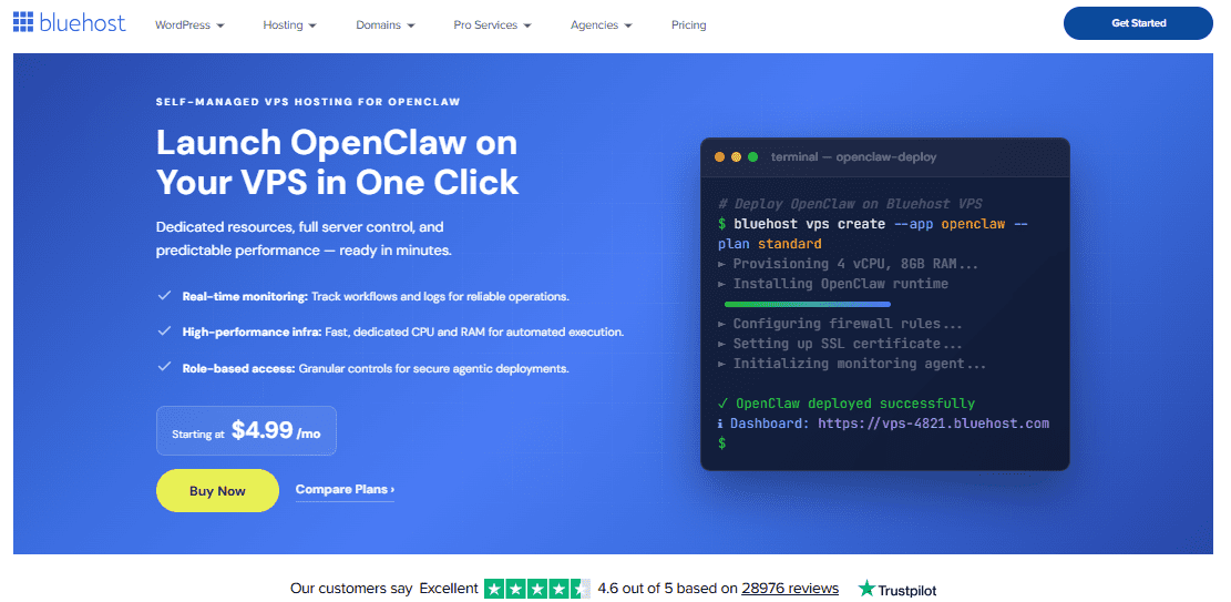 Getting OpenClaw running is only the first step, consistent management is what turns a working installation into a reliable, production-grade AI automation layer your team can depend on around the clock. A Bluehost VPS gives you both the root access and dedicated resources needed to maintain the platform entirely on your own terms, without restrictions imposed by a shared environment.