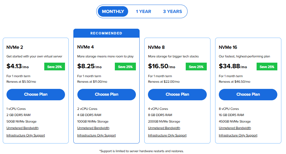 - Navigate to the Bluehost VPS Hosting page and click the Choose Plan button for your selected tier.