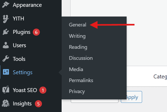1.Log in to your WordPress dashboard and navigate to Settings, then click on General Settings.