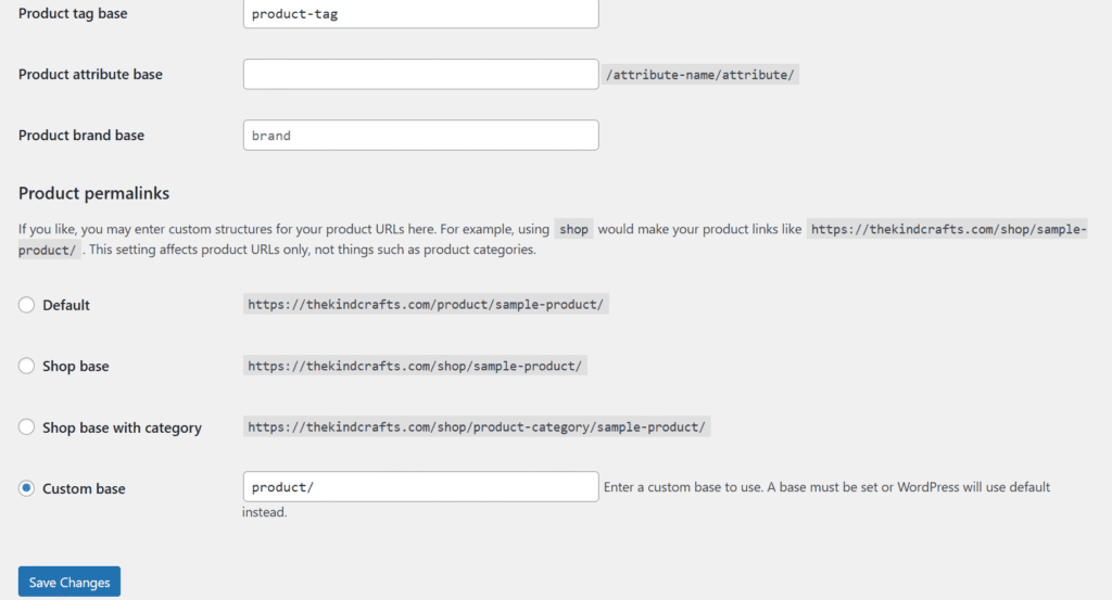 3. Leave the current settings as they are and click ‘Save Changes’ to refresh the permalink structure.