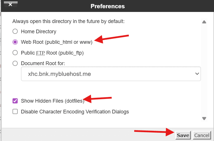 7. Check the box for ‘Show Hidden Files’ (dotfiles) and click ‘Save’.