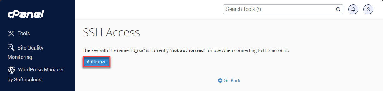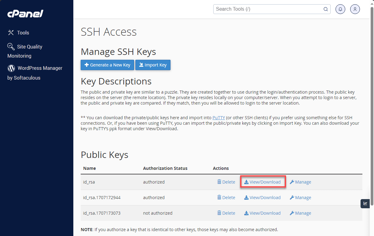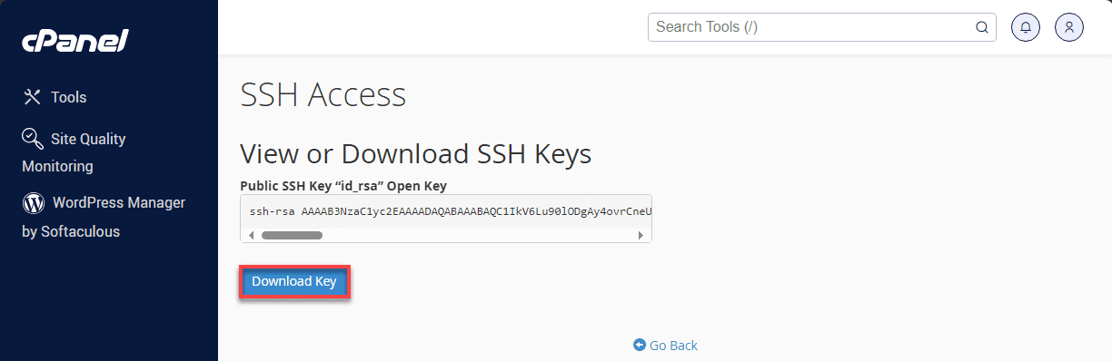 At this stage, the SSH key pair is fully generated and active on your Bluehost account.