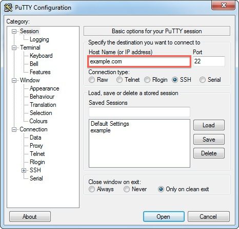 Different servers may use different username conventions, so verify this information with your provider. If your server uses a non-standard port, note this number, as you’ll need it when configuring your PuTTY session.