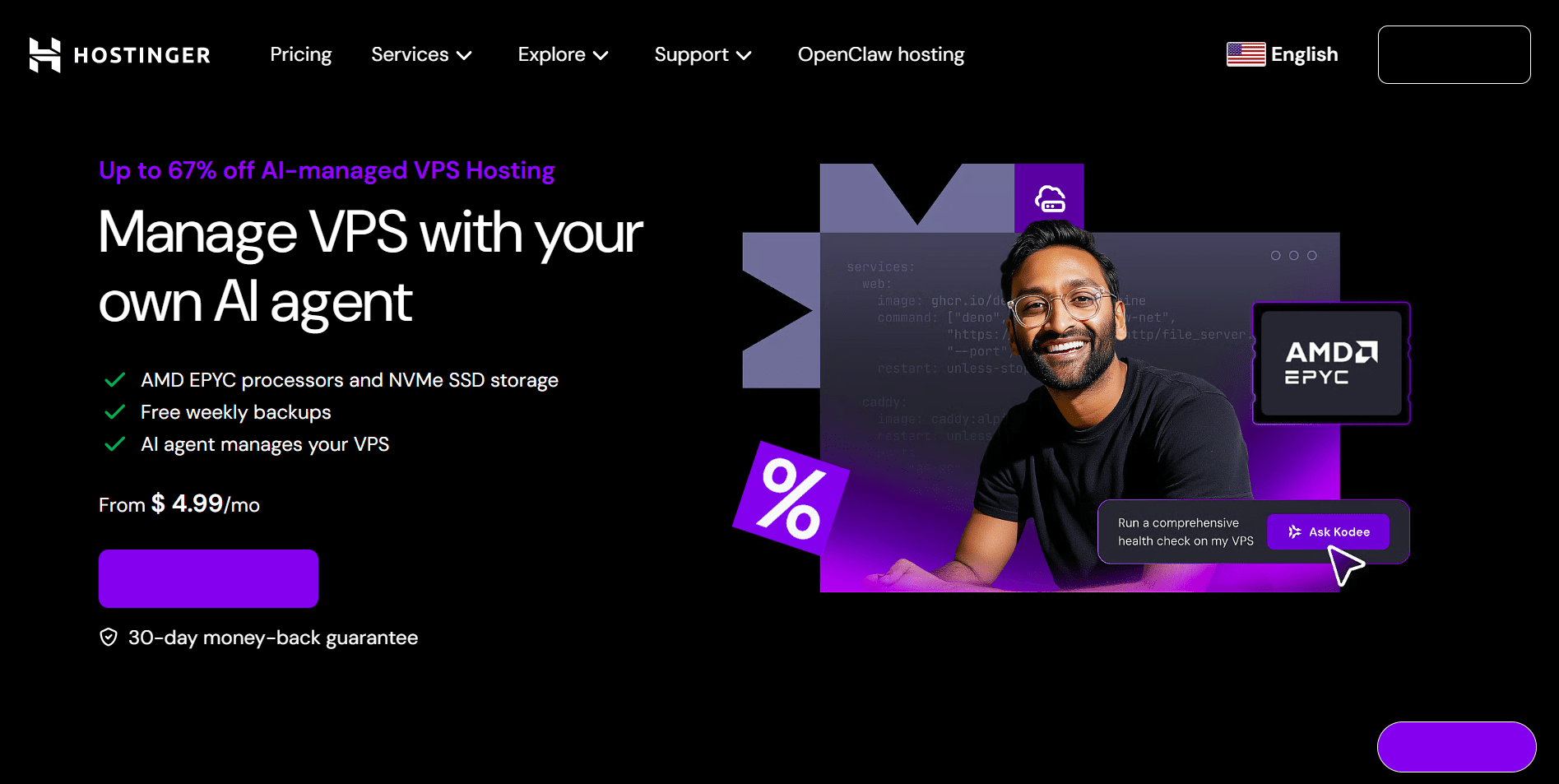 | Hostinger | 4.3/5 | No | $4.99 – $23 | Extremely affordable VPS |