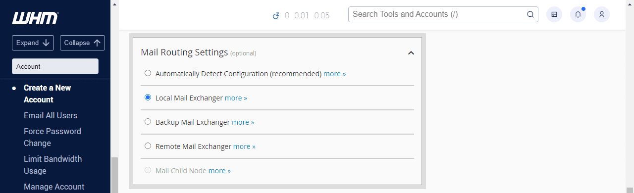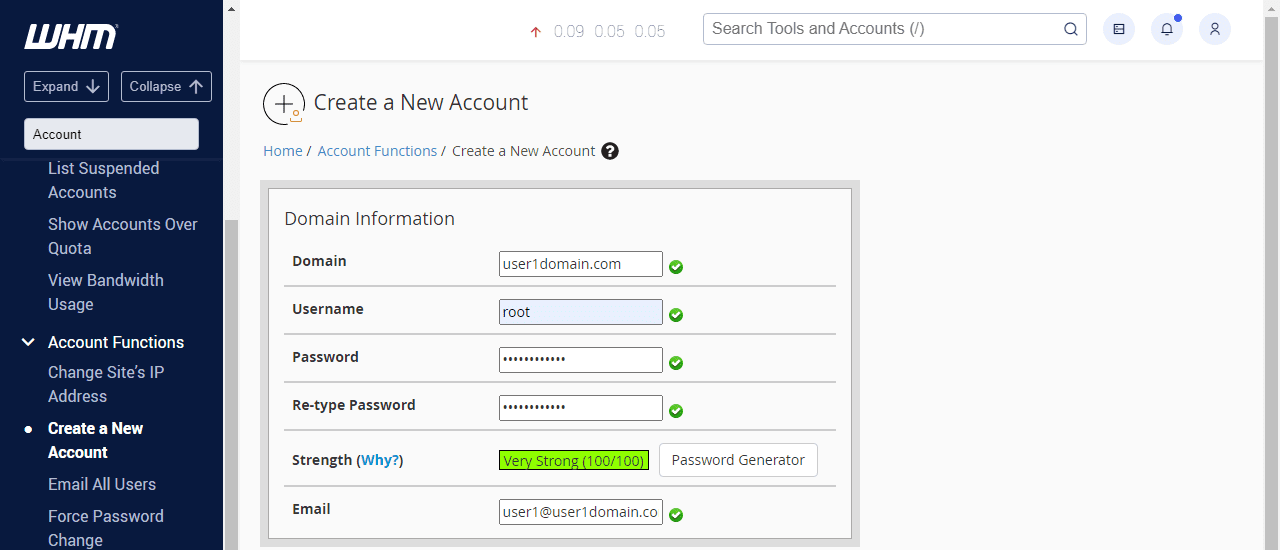 Step 4: Navigate to “Create a New Account” in WHM