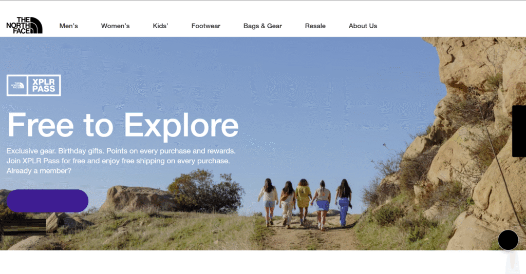 The North Face operates the XPLR Pass, a free, points-based loyalty program where members earn one point for every dollar spent, with every 100 points converting into a $10 reward. In addition to purchases, members can earn points through app-based activities such as checking in at national parks, participating in sustainability initiatives and engaging with brand content. Benefits include early access to new gear, free shipping, birthday rewards and opportunities for field testing and exclusive experiences.