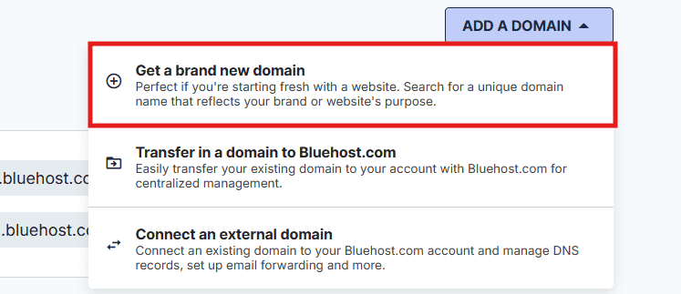 Method 2: Registering through Bluehost Domains (front-of-site)