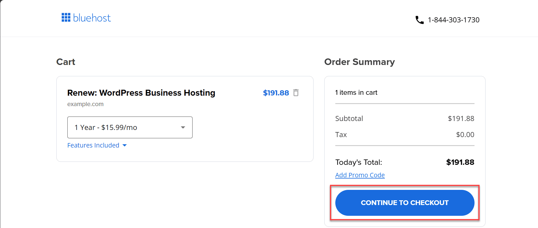 - If the domain is available, you will be redirected to the Cart page. Click Proceed to continue.