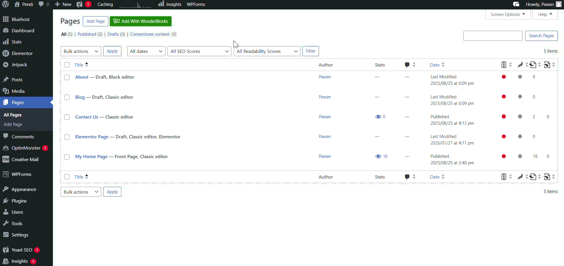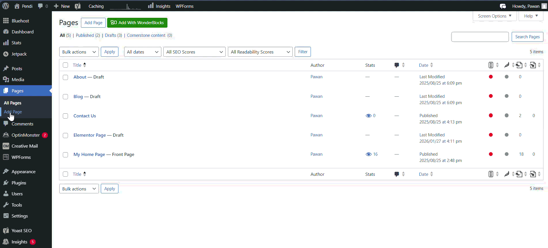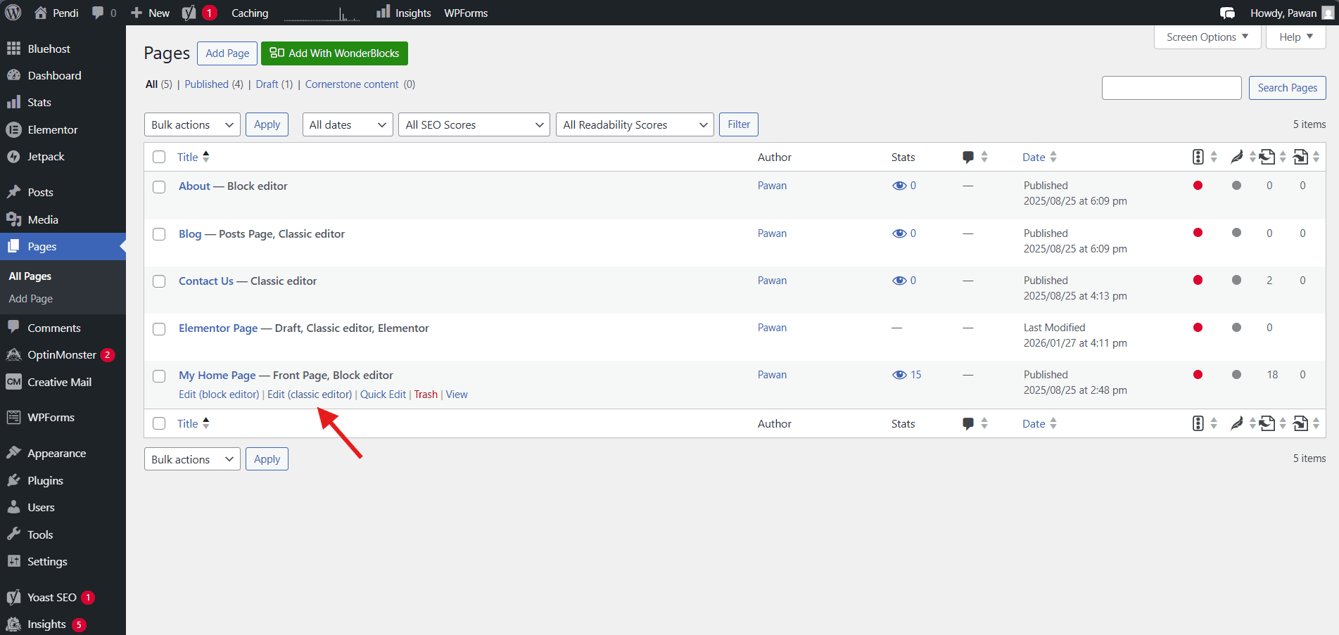 - Navigate to Pages > All Pages in your WordPress dashboard.