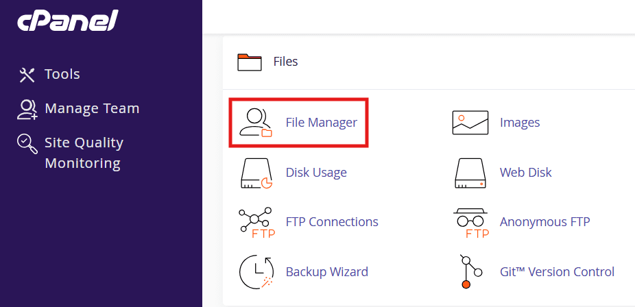 3. Click on cPanel and then in file manager.