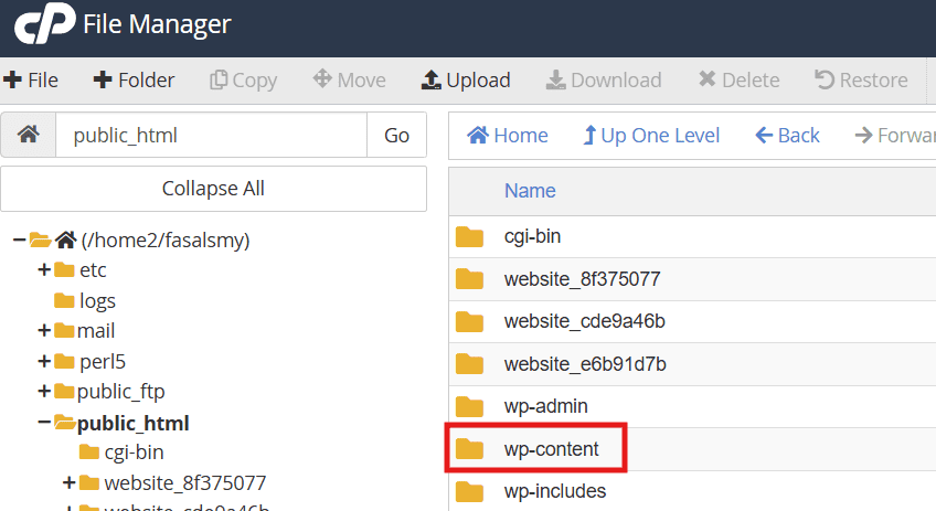 4. Navigate to /wp-content.