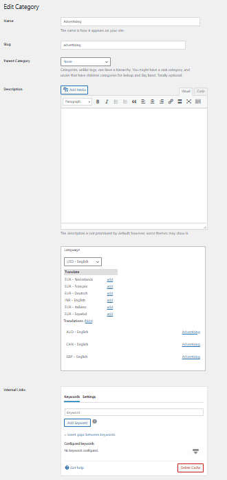 Important: While changing a category name is safe, modifying the slug changes your category’s URL. If that page ranks in search engines or receives external links, changing the slug can create broken links and hurt your SEO. If you must change a slug, set up a 301 redirect from the old URL to prevent traffic loss. All category edits apply immediately across your site.