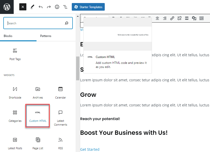 This will show you how to add a video using custom HTML code. Depending on the video you have created, some coding may be provided to you by the source from which you uploaded your video.