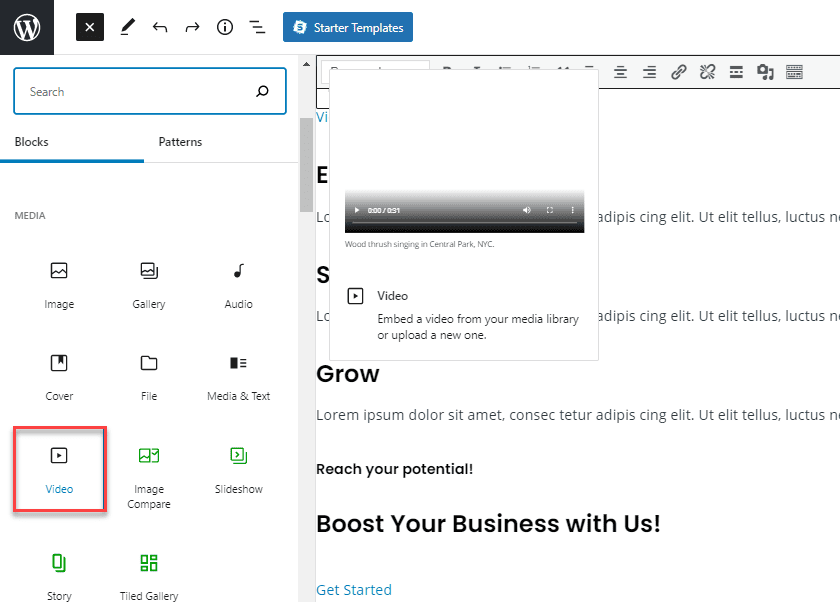 This guide will focus on two popular ways to embed a video onto a WordPress website easily. You can add a video using the text toolbar, located at the top, with various features as you write and create. Alternatively, you can embed video by using the block, which is called the media block feature.