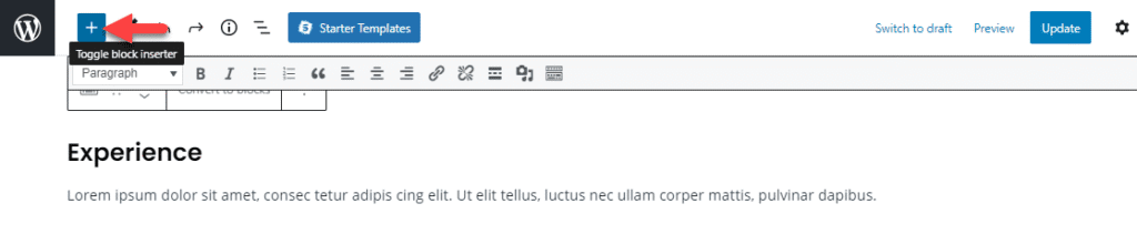 3.From the Page or Post, click on the section you want to add the video. Then, from the top toolbar, click Add Media.