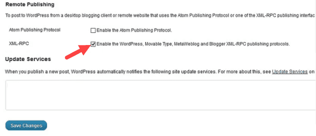 Important: If you do not see this option in the Settings for Remote Publishing on your site, it means that Remote Publishing is enabled by default. If you do not intend to use that feature, you will first need to install a Disable XML-RPC plugin.
