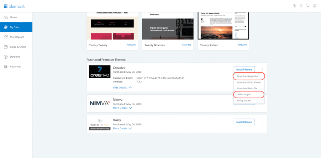 Need more WordPress Theme Support? View Bluehost’s guide: WordPress – Theme Seller Support.