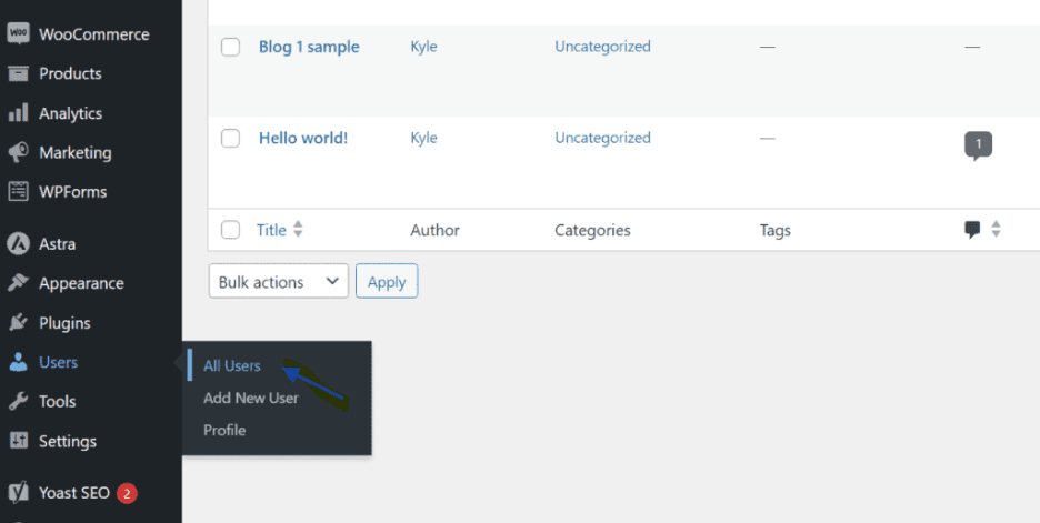 - Go to your WordPress dashboard, then select Users > All Users from the left-hand panel.