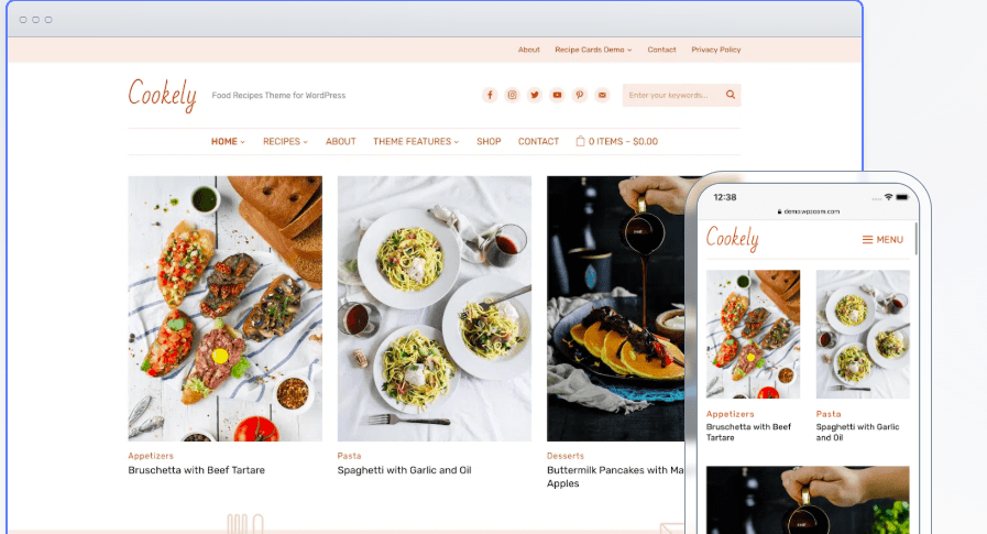 Ensure the wordpress recipe theme is responsive. It should offer a smooth user experience on all devices, including desktops, tablets and mobile devices. This is essential for anyone accessing your cooking tips, video recipes or cooking instructions on the go.