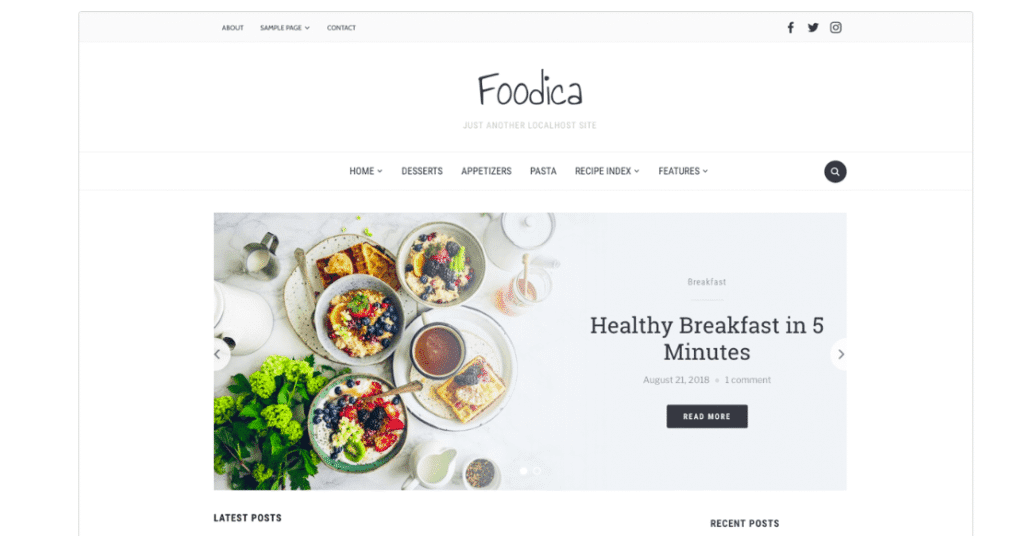 With a classic blog design, Foodie offers customization options like personalized backgrounds and logos. Use the WordPress live customizer tool to easily modify the appearance of your website according to your preferences.