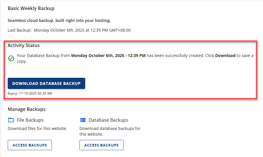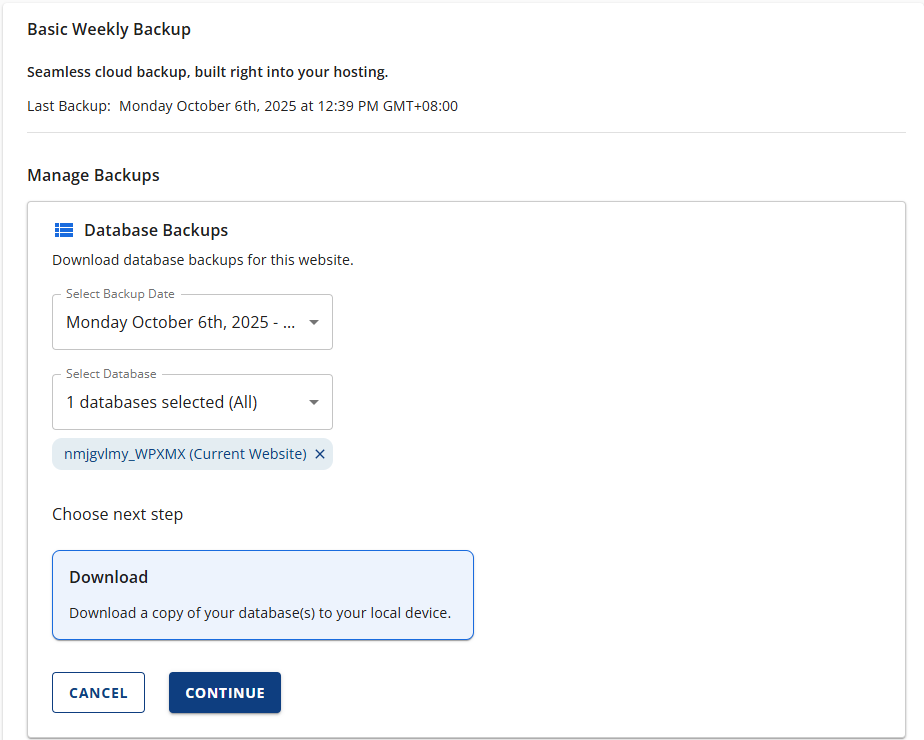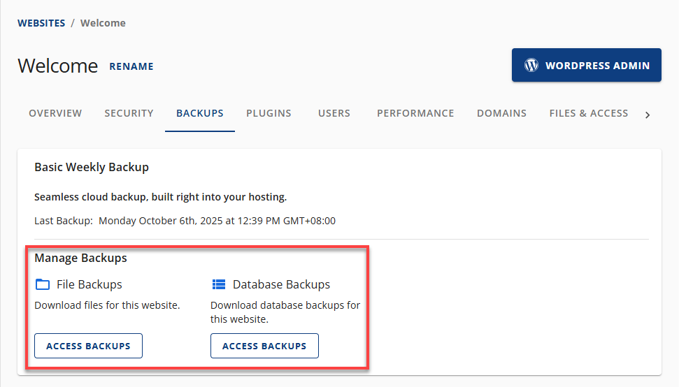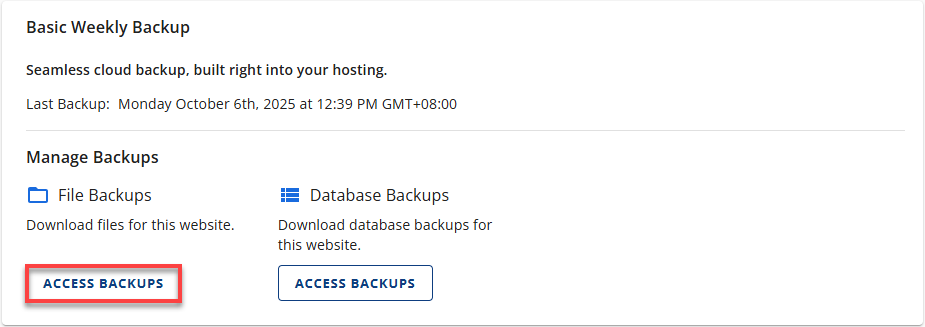 - Database Backups – Contains your site's database content.
