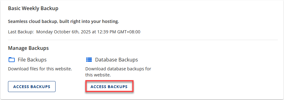 - Click Access Backups under the Database Backups section.