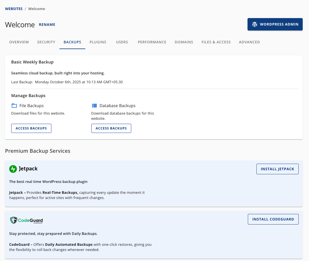 - Basic Backup (Weekly): Seamless cloud backup integrated into hosting.
