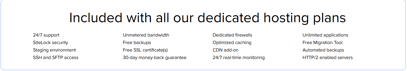 Because of no resource sharing, dedicated hosting also ensures consistent high-speed performance and maximum uptime. So, it’s ideal for large-scale websites, high-traffic applications and businesses that handle sensitive data.